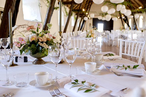 – Jag gillar att jobba med lite variation på borden så att några blommor är låga medan andra sticker upp lite mer busigt utan att man skymmer sikten mellan gästerna, säger Helene.