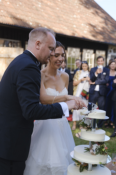 –Vi ville att bröllopstårtan skulle få en större plats under dagen och inte komma fram när alla var trötta och mätta. Den skulle få stå i centrum, säger Christine.