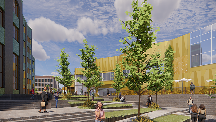 Den del av Boulevard som ligger söder om entrén vid Cardellsgatan kommer att försvinna. Även om man bjuder in till ”rivstart” är det faktiskt bara en mindre del som kommer att rivas – för att göra plats för det nya stråk som öppnas upp ner till kanalen. Resterande del, där högskolan ska ligga, demonteras istället och 10 000 kvadratmeter betong ska återbrukas – ett av Sveriges största återbruksprojekt någonsin.